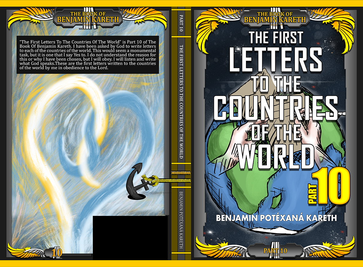 Part 10: The First Letters To The Countries Of The World – “The First Letters To The Countries Of The World” is Part 10 of The Book Of Benjamin Kareth. I have been asked by God to write letters to each of the countries of the world. This would seem a monumental task, but it is one that I say Yes to. I do not understand the reason for this or why I have been chosen, but I will obey. I will listen and write what God says. These are the first letters written to the countries of the world by me in obedience to the Lord. This book contains 202 letters written to each of the countries in the world at the time of the writing of this book.