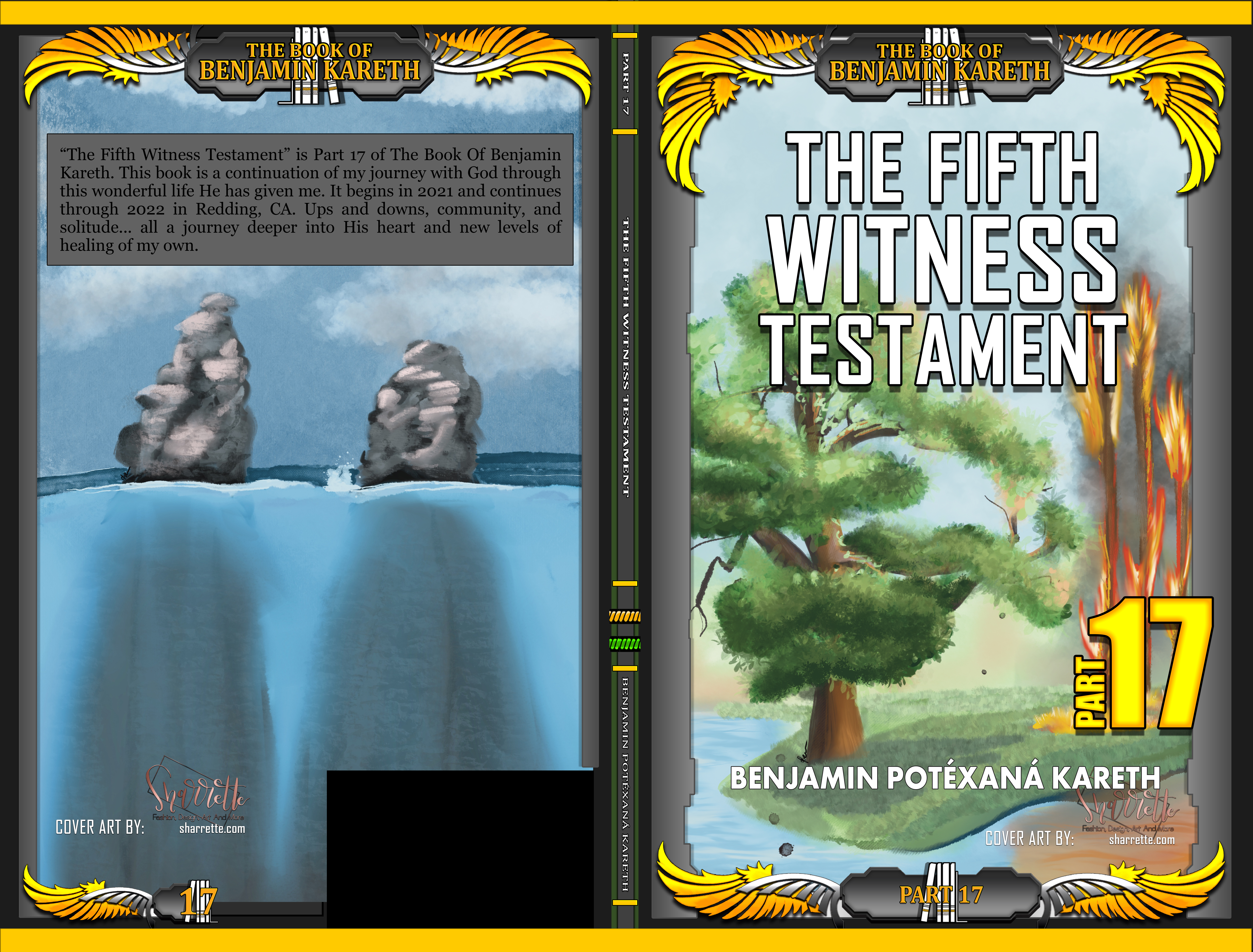 Description: “The Fifth Witness Testament” is Part 17 of The Book Of Benjamin Kareth. This book is a continuation of the journey of Benjamin Kareth as he travels with God through this wonderful life God has given him. It begins in 2021 and continues through 2022 in Redding, CA. Discover the ups and downs, community, and solitude… all on the journey deeper into God’s heart.