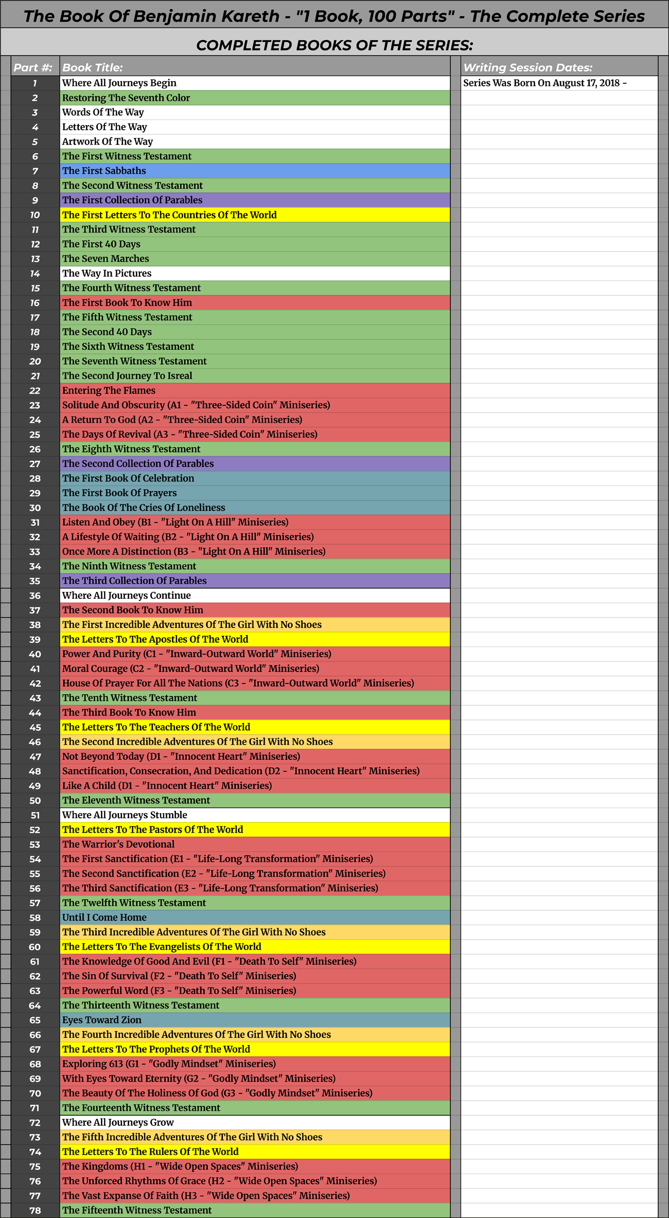 - The Book Of Benjamin Kareth was born on August 17th, 2018 and will be completed on February 18th, 2028.