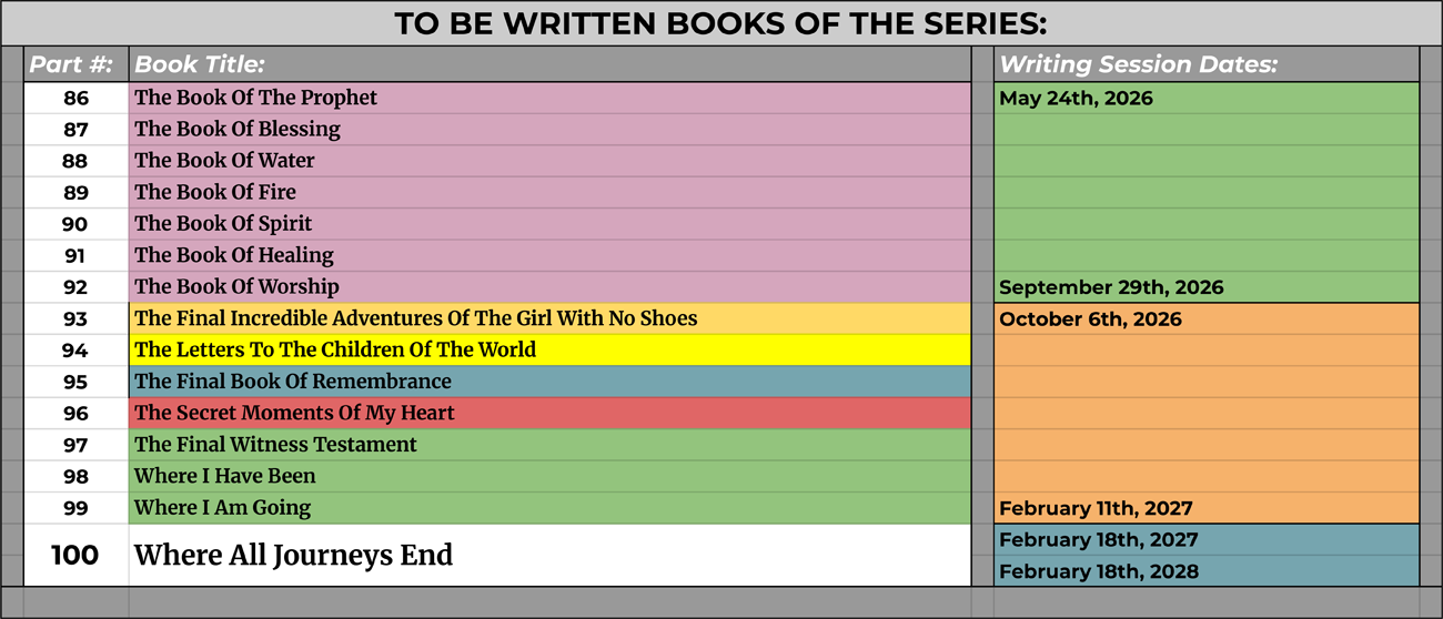 I begin writing the next 7 books on January 9th, the day I re-enter Deep Solitude.