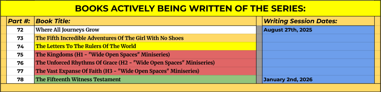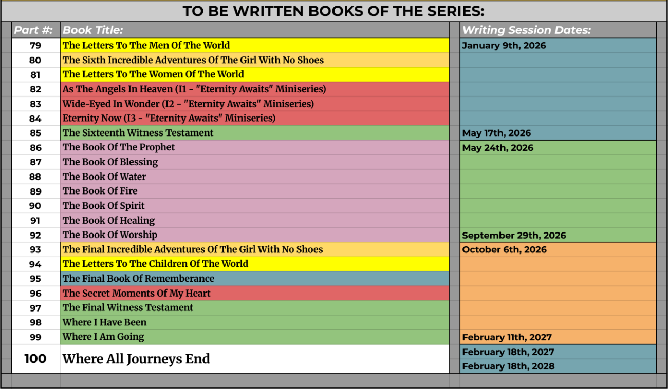 - Total Writing Time: Just Over 9 1/2 Years (9 Years, 6 Months, 1 Day)